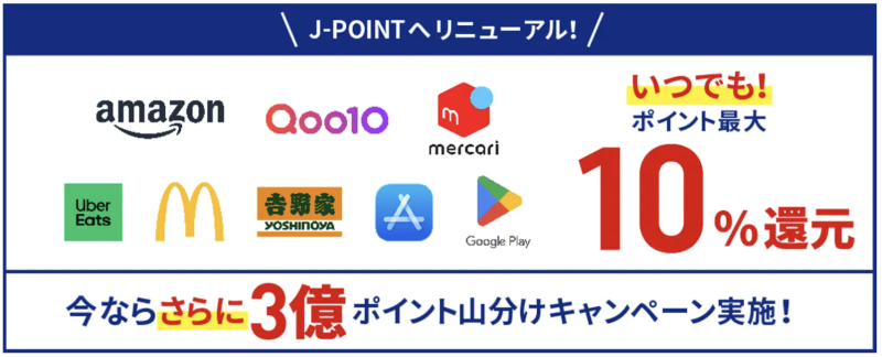 また、ポイント交換レートや、対象店舗利用時のポイント還元率アップ(J-POINTパートナー)年間利用特典(J-POINTボーナス)が変更されています。
