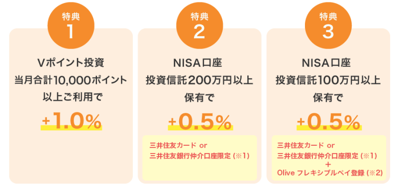 『NISA口座の投資信託月末評価額』の条件は、三井住友カード or 三井住友銀行の仲介口座の方のみが対象です。