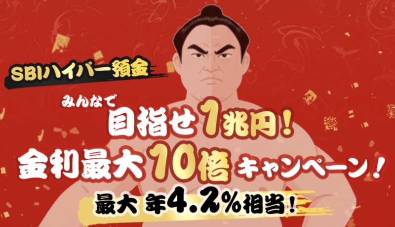 2025年12月10日(水)~2026年3月31日(火)の間、SBIハイパー預金の預金金利が最大10倍に上乗せされるSBIハイパー預金の金利が最大10倍キャンペーンが実施されています。