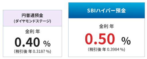 ダイヤモンドであれば、普通預金金利が税引前0.40%になります。