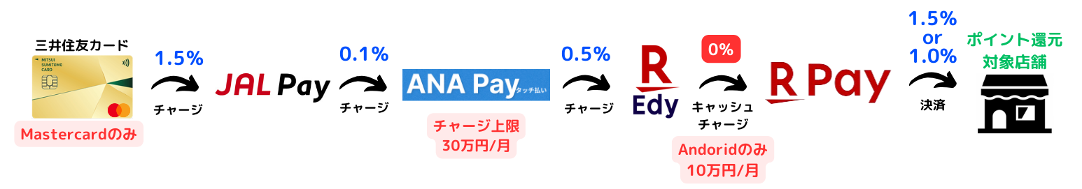 現状、Mastercardの方が他社キャッシュレス決済へのチャージに対応していることが多いため、Visaよりも活用価値は高いです。